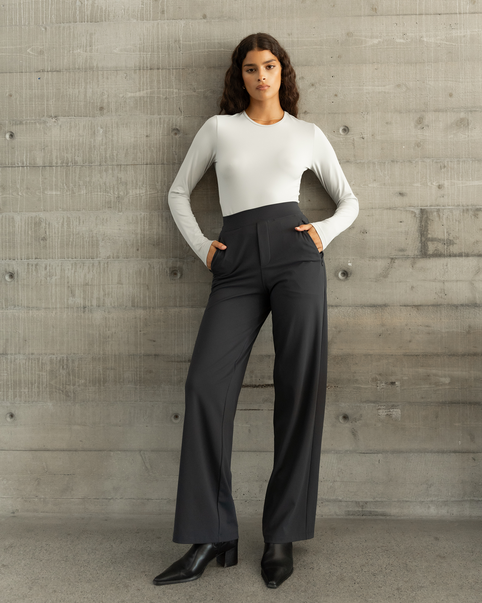 A fit-and-fabric guide to Ninepine office pants — how to choose between Asana, Tailored Ponte and Crepe for a polished work look, with recommended styles across different fits.