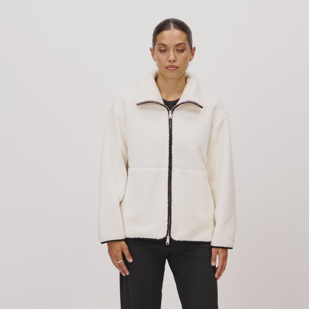 Experience the luxury of comfort with Ninepine's versatile fleece jacket that combines elegance with practicality. This cold weather staple has thoughtful details such as hidden pockets, 2-way zipper and soft fleeced lining that makes it a perfect addition to your capsule wardrobe. Dress up or down, the relaxed fit and dropped shoulder design provide a comfortable, yet sophisticated look.