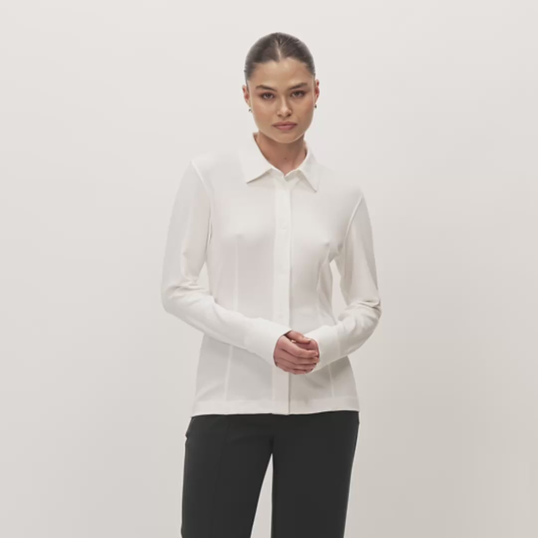 A fitted stretch button-down shirt designed with subtle shaping in all the right places. Made from soft LENZING™ Modal jersey, this shirt features front darts for a more contoured fit. Sharp enough for work, comfortable enough for all-day wear.